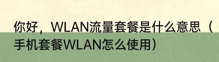 • 你好,WLAN流量套餐是什么意思(手机套餐WLAN怎么使用)