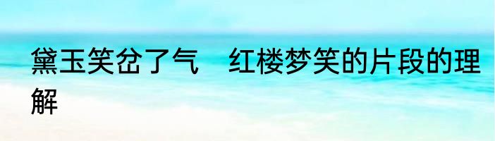 黛玉笑岔了气 红楼梦笑的片段的理解