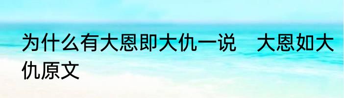 简介为什么有大恩即大仇一说?“大恩即大仇”是一个成语,其含义是指某些人在受到巨大的恩惠后,由于无法回报或承受这种恩惠所带来的压力,他们