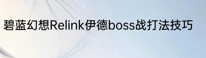 简介大家好,小雷来为大家讲解下碧蓝幻想Relink伊德boss战打法技巧,现在让我们一起来看看吧! 碧蓝幻想Relink在主线任务时还会遭遇不同等级的bos