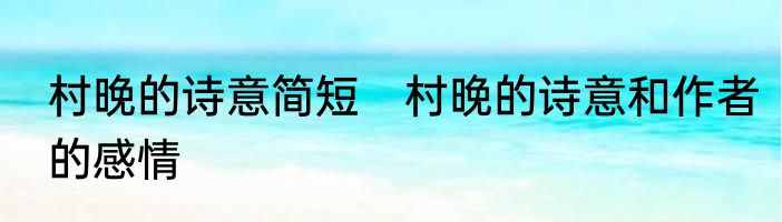 村晚的诗意简短 村晚的诗意和作者的感情