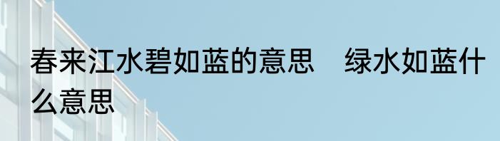 春来江水碧如蓝的意思 绿水如蓝什么意思
