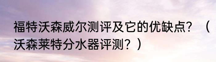 福特沃森威尔测评及它的优缺点?(沃森莱特分水器评测?)