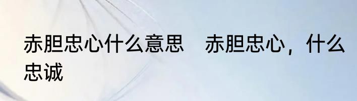 赤胆忠心什么意思 赤胆忠心,什么忠诚