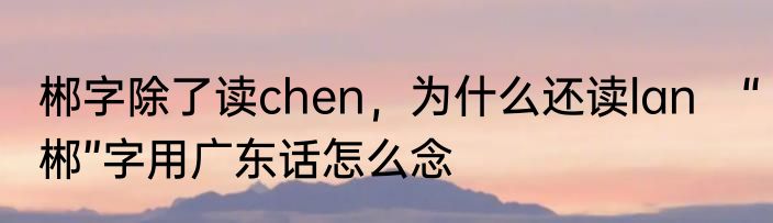 郴字除了读chen,为什么还读lan “郴”字用广东话怎么念