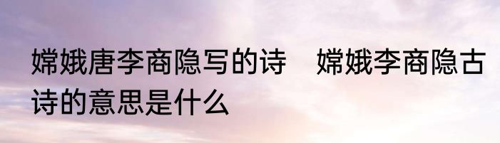 嫦娥唐李商隐写的诗 嫦娥李商隐古诗的意思是什么
