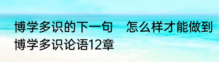 博学多识的下一句 怎么样才能做到博学多识论语12章
