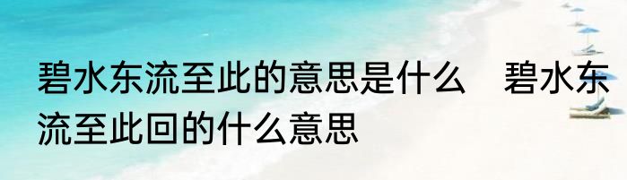 碧水东流至此的意思是什么?