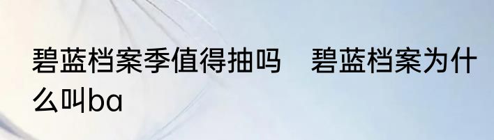 碧蓝档案季值得抽吗 碧蓝档案为什么叫ba