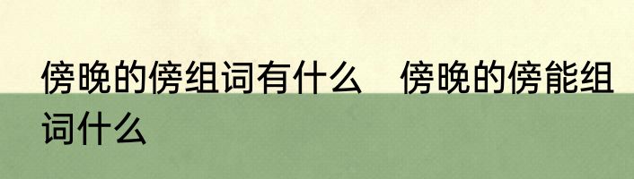 傍晚的傍组词有什么 傍晚的傍能组词什么