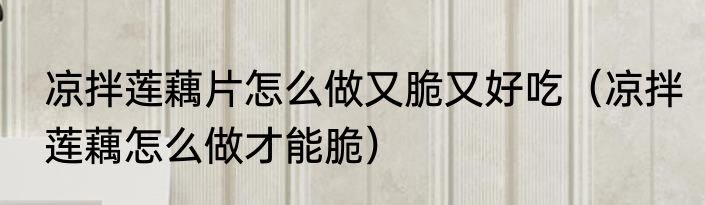凉拌莲藕片怎么做又脆又好吃(凉拌莲藕怎么做才能脆)