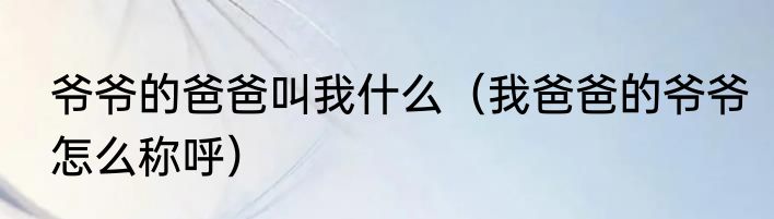 爷爷的爸爸叫我什么(我爸爸的爷爷怎么称呼)