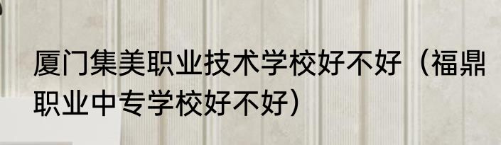 厦门集美职业技术学校好不好(福鼎职业中专学校好不好)
