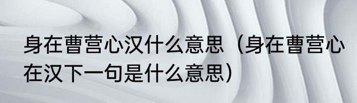 身在曹营心汉什么意思(身在曹营心在汉下一句是什么意思)
