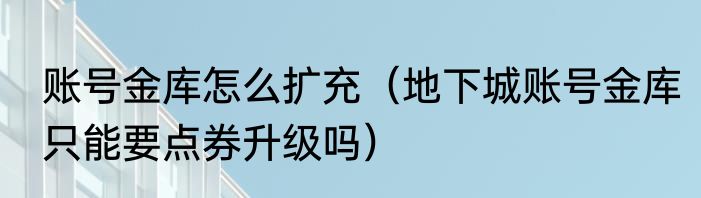 账号金库怎么扩充(地下城账号金库只能要点券升级吗)