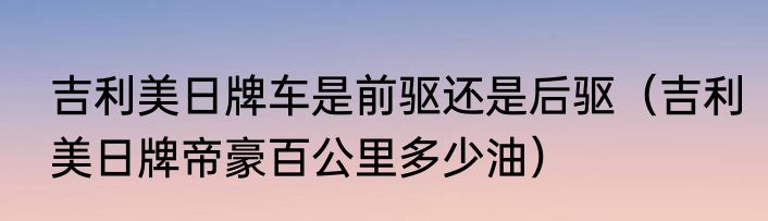 吉利美日牌车是前驱还是后驱(吉利美日牌帝豪百公里多少油)