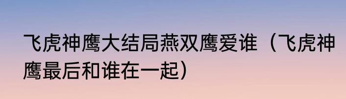 飞虎神鹰大结局燕双鹰爱谁(飞虎神鹰最后和谁在一起)