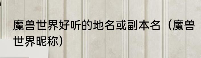 魔兽世界好听的地名或副本名(魔兽世界昵称)