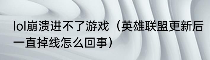 lol崩溃进不了游戏(英雄联盟更新后一直掉线怎么回事)