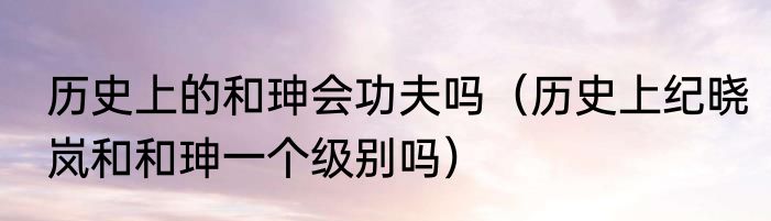 历史上的和珅会功夫吗(历史上纪晓岚和和珅一个级别吗)