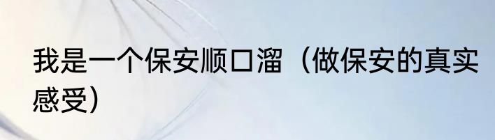我是一个保安顺口溜(做保安的真实感受)