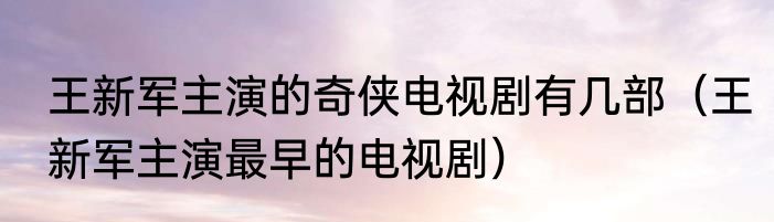 王新军主演的奇侠电视剧有几部(王新军主演最早的电视剧)