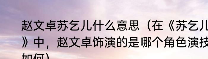 赵文卓苏乞儿什么意思(在《苏乞儿》中,赵文卓饰演的是哪个角色演技如何)