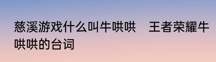 慈溪游戏什么叫牛哄哄 王者荣耀牛哄哄的台词