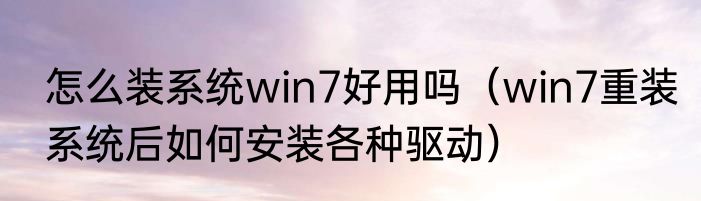 怎么装系统win7好用吗(win7重装系统后如何安装各种驱动)
