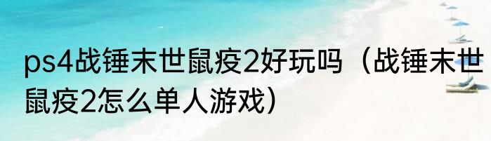ps4战锤末世鼠疫2好玩吗(战锤末世鼠疫2怎么单人游戏)