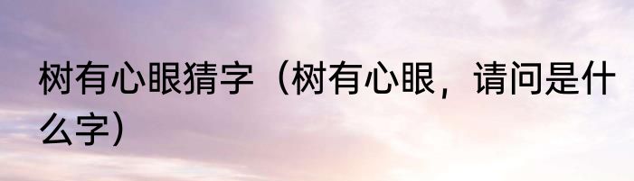 树有心眼猜字(树有心眼,请问是什么字)