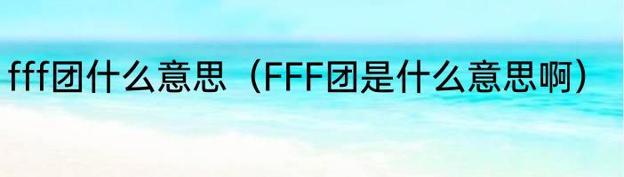 简介fff团什么意思?fff团,网络上的该词,意为当遇到秀恩爱的行为时就有种想要把对方“烧死”的一种群体,所以特指单身狗们。该词出自轻小说《