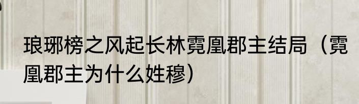 琅琊榜之风起长林霓凰郡主结局(霓凰郡主为什么姓穆)