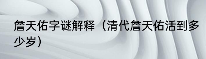 詹天佑字谜解释(清代詹天佑活到多少岁)