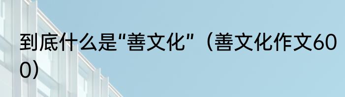 到底什么是“善文化”(善文化作文600)