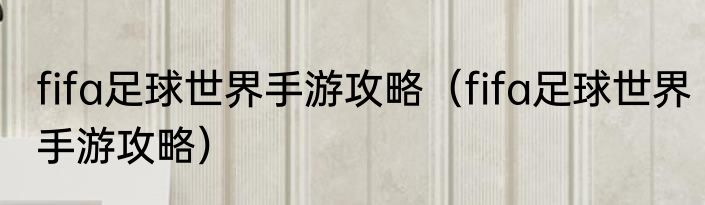 fifa足球世界手游攻略(fifa足球世界手游攻略)