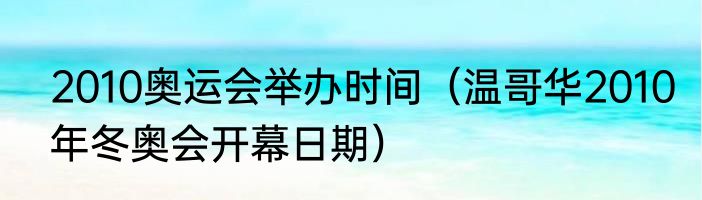 2010奥运会举办时间(温哥华2010年冬奥会开幕日期)