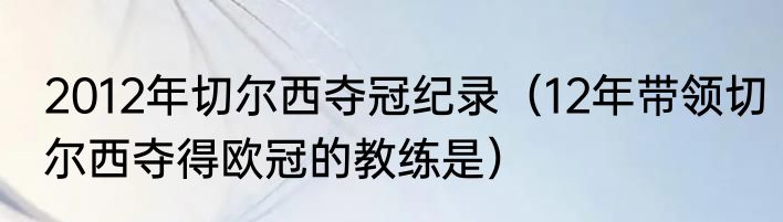 2012年切尔西夺冠纪录(12年带领切尔西夺得欧冠的教练是)
