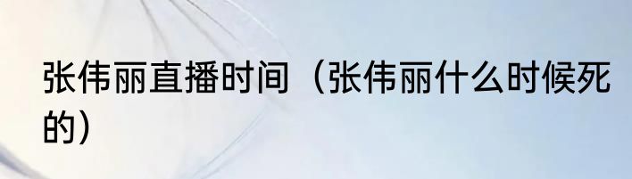 张伟丽直播时间(张伟丽什么时候死的)