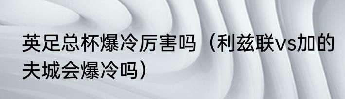 简介英足总杯爆冷厉害吗?厉害英足总杯本来就是英格兰足球的传统赛事,历史悠久,各个球队也十分重视。因为多了一个联赛杯,相对于其他联赛只有