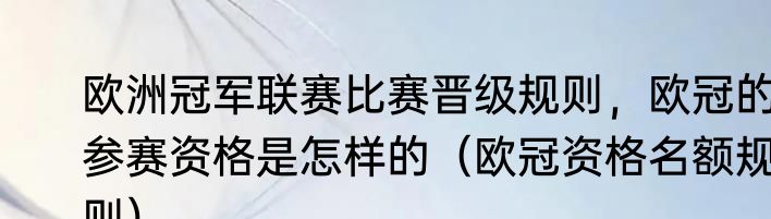 欧洲冠军联赛比赛晋级规则,欧冠的参赛资格是怎样的(欧冠资格名额规则)