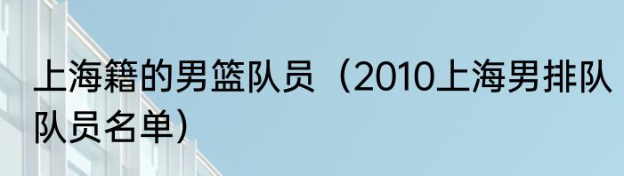 上海籍的男篮队员(2010上海男排队队员名单)