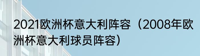 2021欧洲杯意大利阵容(2008年欧洲杯意大利球员阵容)