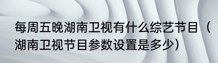 每周五晚湖南卫视有什么综艺节目(湖南卫视节目参数设置是多少)