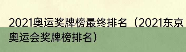 2021奥运奖牌榜最终排名?