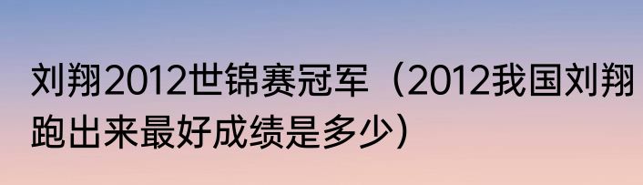 刘翔2012世锦赛冠军(2012我国刘翔跑出来最好成绩是多少)