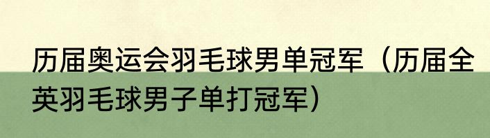 历届奥运会羽毛球男单冠军(历届全英羽毛球男子单打冠军)
