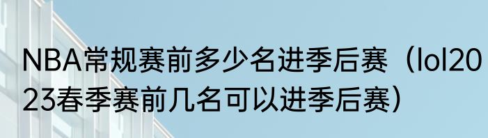 NBA常规赛前多少名进季后赛(lol2023春季赛前几名可以进季后赛)