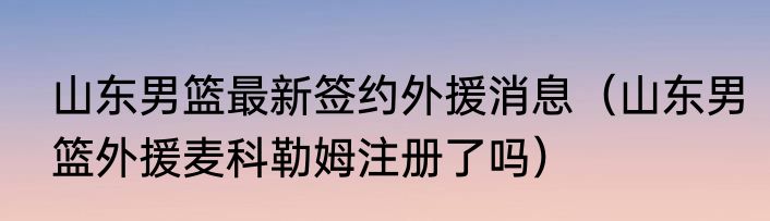 山东男篮最新签约外援消息(山东男篮外援麦科勒姆注册了吗)