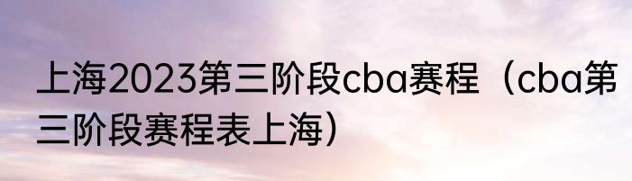 上海2023第三阶段cba赛程(cba第三阶段赛程表上海)